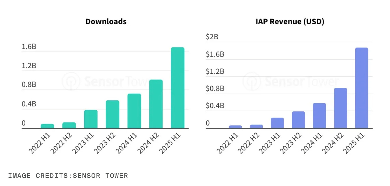 GenAI apps doubled their revenue, grew to 1.7B downloads in first half of 2025.